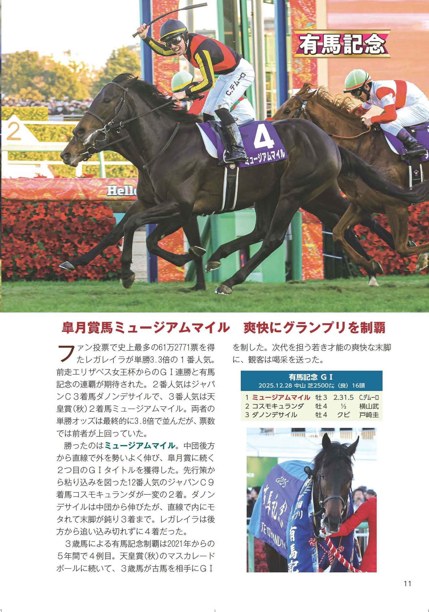 国内外のG1レース(ダートグレード競走含む)をカラーグラビアとモノクロページで紹介し、2025年のレースシーンを総括した永久保存版です。